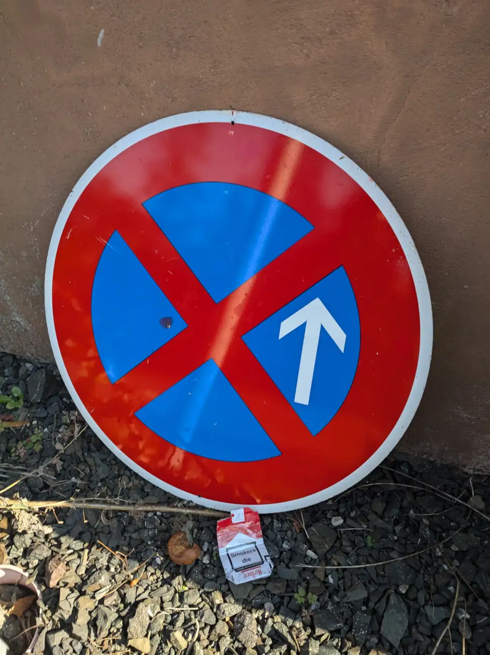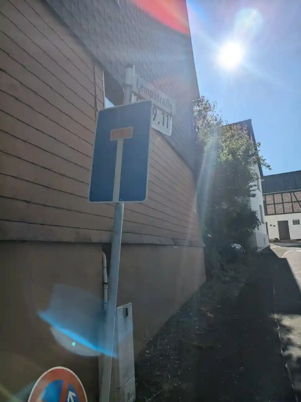 Folgendes Bild zeigt das Schild, das im Dokumemt Beschlussache des Amtsgerichtes als Polizeisache als "Halteverbotsschild" zitiert wurde, kennzeichnet aber nicht oder vielleicht eher nicht den ganzen Umfang, daher wurde der Bericht der angehängt wurde vielleicht bereits geändert. An der Grundstücksgrenze lag auch eine öfter hier befindliche Zigaretten Packung. Die Änderungen sind Verstehensschritte kennzeichnen aber nie den Umfang. Zitat "Halteverbotsschild", der Beschluss liset sich auch als Beugung des Unfalles am 18.8./19.8.2025 und aller zukünftigen Unfälle.