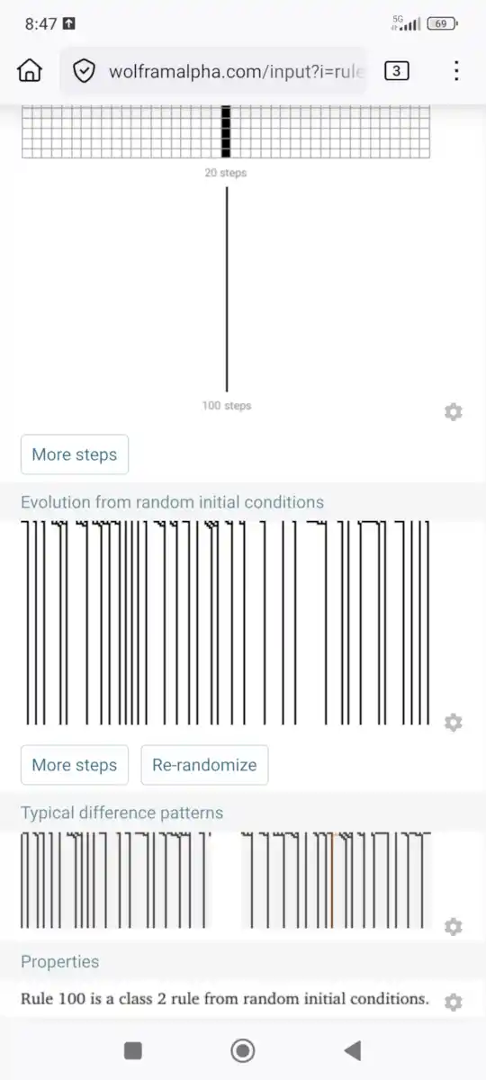Zu "random initial conditions" aus cell automaton "rule 100". Ich habe an meinem 20ten Geburtstag eine Zahlenreihe gebildet, die sich von der Überlegung leicht ähnlich liest, allerdings nur aus Langeweile um die Zahl 29 zu bilden. Zahlenreihe: 3,12,19,28. Die Zahlenreihe ist wohl unvollständig geblieben, dies sei sozial relevant für Berufstätigkeit? In den Wahlen geht es um Zahlen. Aber was ist das für eine Wut, die im Rechtssystem installiert wurde in der Bundesrepublik? Sogar jetzt bleibe ich mehrfach erfolgreich mit Mordunfällen als Gewalt Opfer, allerdings muss ich bloggen, das einige übernommen worden sind und bisher im 17ten Kalenderjahr hat noch nie jemand mit mir über diese rechtsstaatlichen Vorgänge geredet. Im 15ten Kalenderjahr gab es einmal Arbeitsgericht, das war es soweit, damit gilt jetzt eher Faschismus. Mir ist es aber zu blöd jetzt "12 + 3" zu rechnen, ich sage lieber weiter aus. Trotzdem, was war demnach das 12te Kalenderjahr seit 2010? Gut das ist ein wenig seltsam, das wäre das Kalenderjahr 2021. Aber was wenn man nicht addieren sollte laut Zahlenmauer und Excelblatt, dann wäre das Jahr 2009 gemeint. Zahlen Mauer und Excelblatt ist eine Fremd Zusammenschau, ähnlich dem aktuellen Amtsgerichts-Dokument, aber leicht zu schildern und damit keine gültige Beugung der Aussagefähigkeit. Was spricht denn dagegen ein "Marienkäferhemd" zu posten?